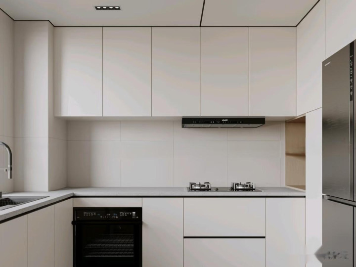 厨房吊柜,如故忽视通顶筹谋,直顶天花板,不留赋闲,幸免油污灰尘。淌若确切无法到顶,不错使用封板贬责。