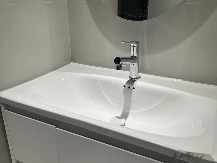 岩板一体盆是整块岩板切割后粘成的洗手盆,通常在搭配上岩板的台面,形成无缝一体的后果显得很高档。