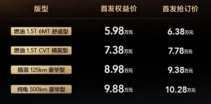 而星光560的一个极端之处,即是同期推出了燃油、插混和纯电版块,而如若把燃油手动、自动挡分开的话,这款车还是具备4套能源总成,都辘集在了6-10万元这个相对狭隘的界限里。
