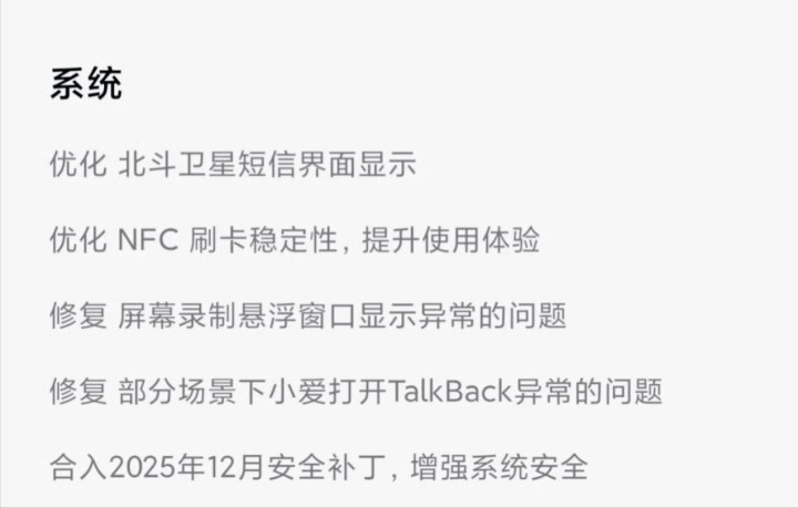 还顺遂塞进去了2025年12月的安全补丁,这安全感给的足足的。