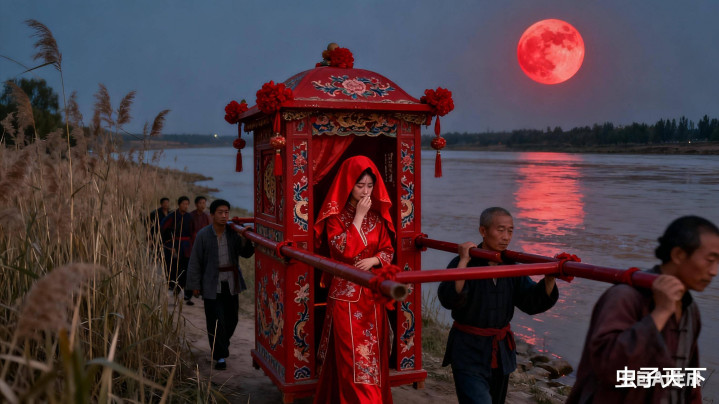 月亮跟血盘子似的挂在天上,风一吹,芦苇“沙沙”响,像有东谈主在哭。