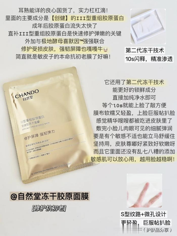 这款面膜的亮点在于它含有III型重组胶原卵白,这种胶原卵白和咱们东说念主体自己的胶原卵白是相似的,是以能更好地被皮肤收受哄骗。它能促进东说念主体所需胶原的生成,让皮肤以肉眼可见的速率“嘭”起来,补助架更牢固了!