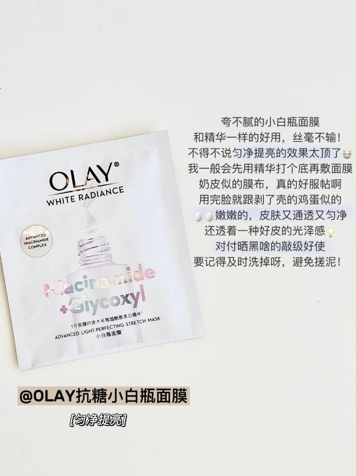 熬夜党们堤防啦!皮肤蜡黄无光?试试Olay抗糖小白瓶面膜吧!每次敷完,肤色立马提亮,变得透亮有后光,它含有多种抗糖化因素,能灵验相悖糖分对肌肤的损害,留神肌肤老化和色素千里淀。
