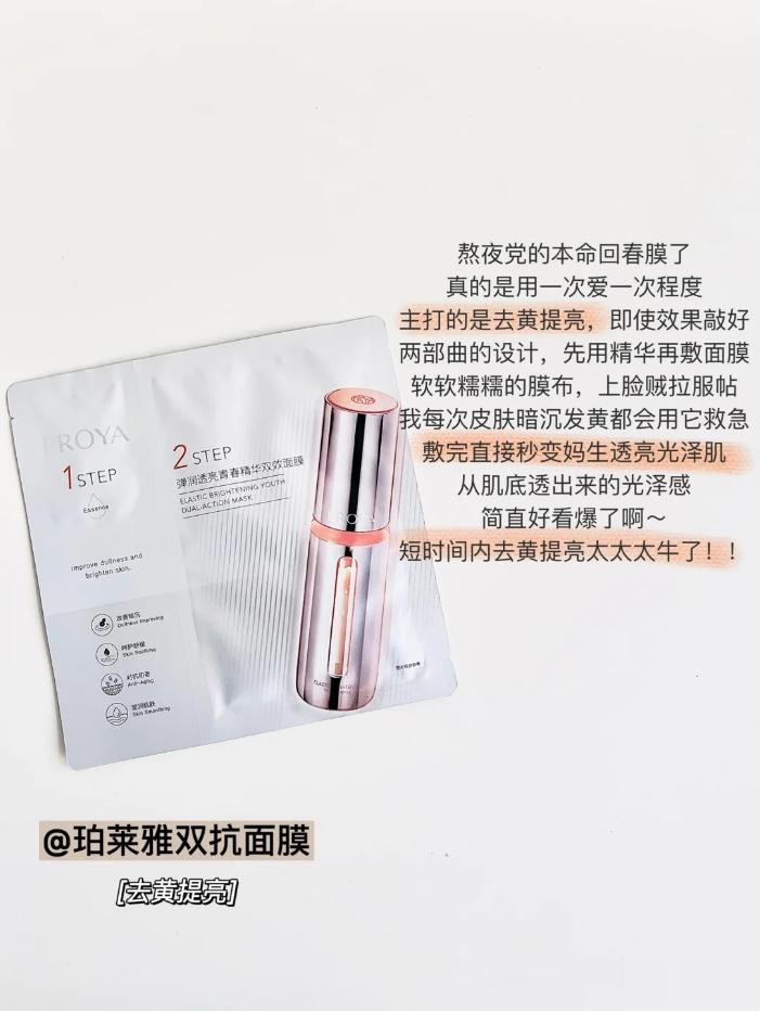属于是越用脸越亮的那种,并且续航力也超等好,第二天的素颜堪比妈生好皮一般的透亮精致,先用抗氧精华打底,质料超等澄莹好收受,珀莱雅双抗线的去黄提亮真无须俺多说了,再敷上头膜膜布确凿好中意好软。
