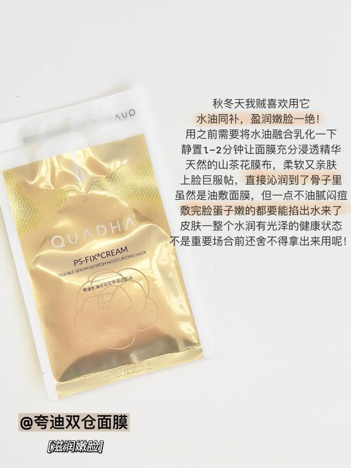 秋冬天我贼可爱用它,水油同补,盈润嫩脸一绝,用之前需要将水油交融乳化一下,静置1-2分钟让面膜充分浸透精华,自然的山茶花膜布,柔滑又亲肤。